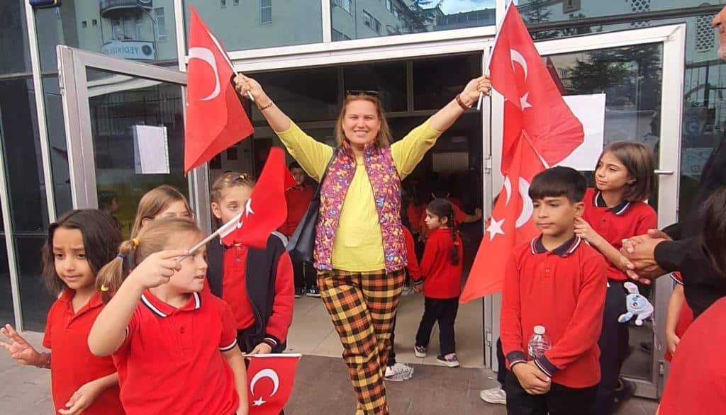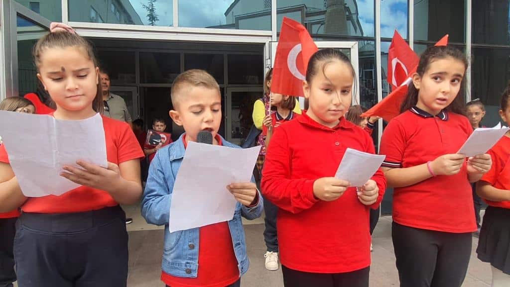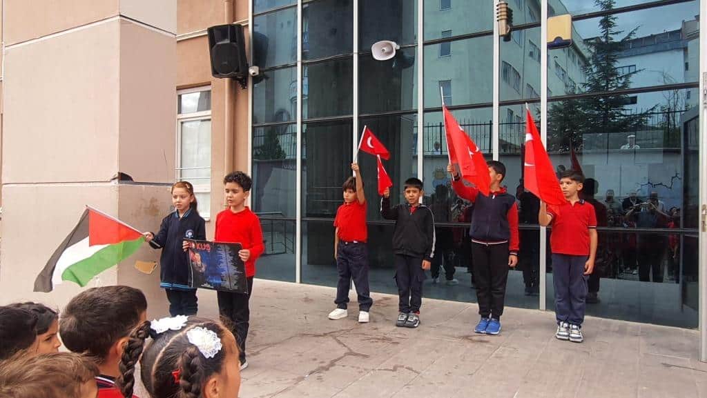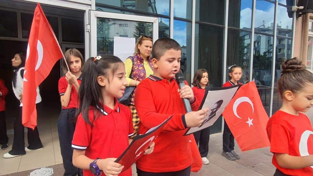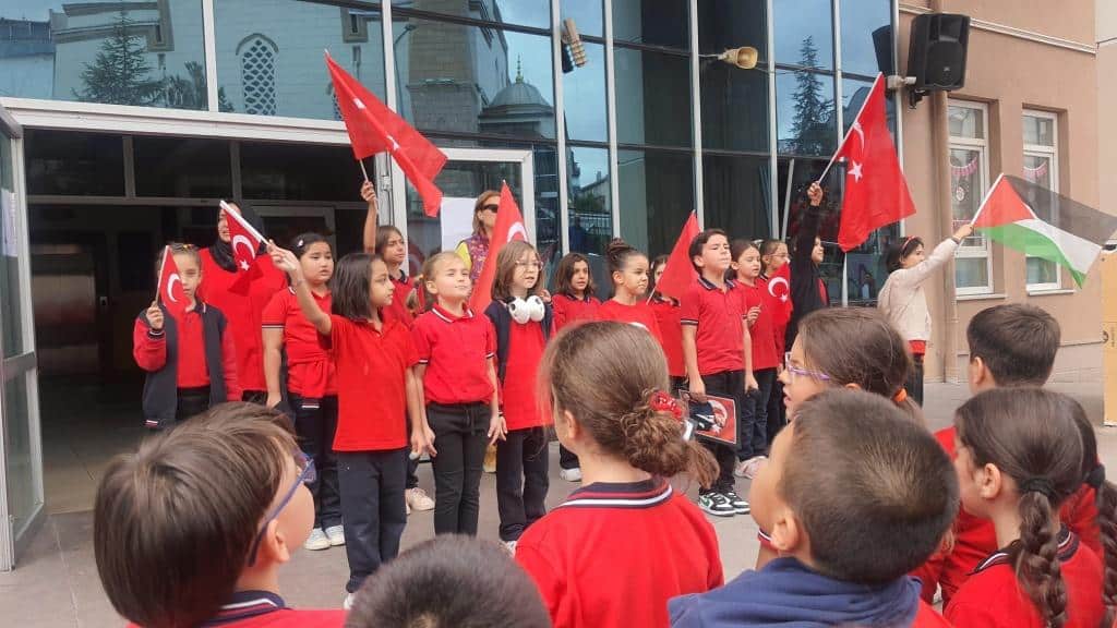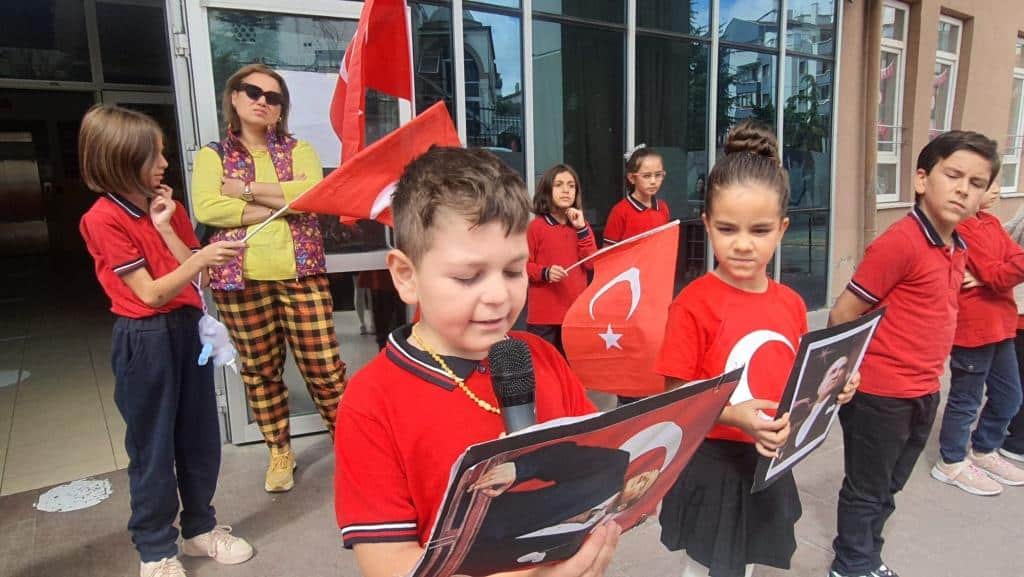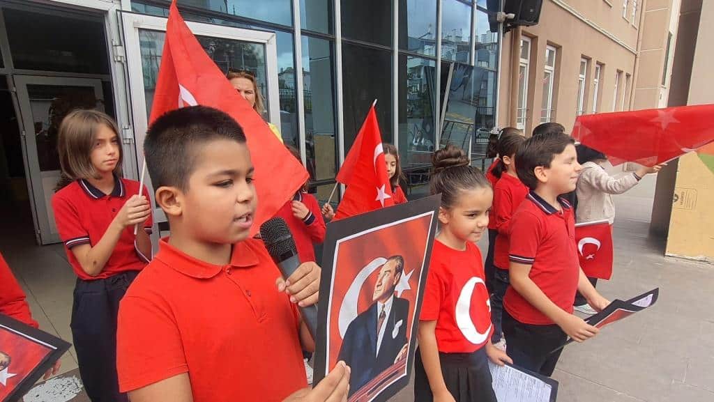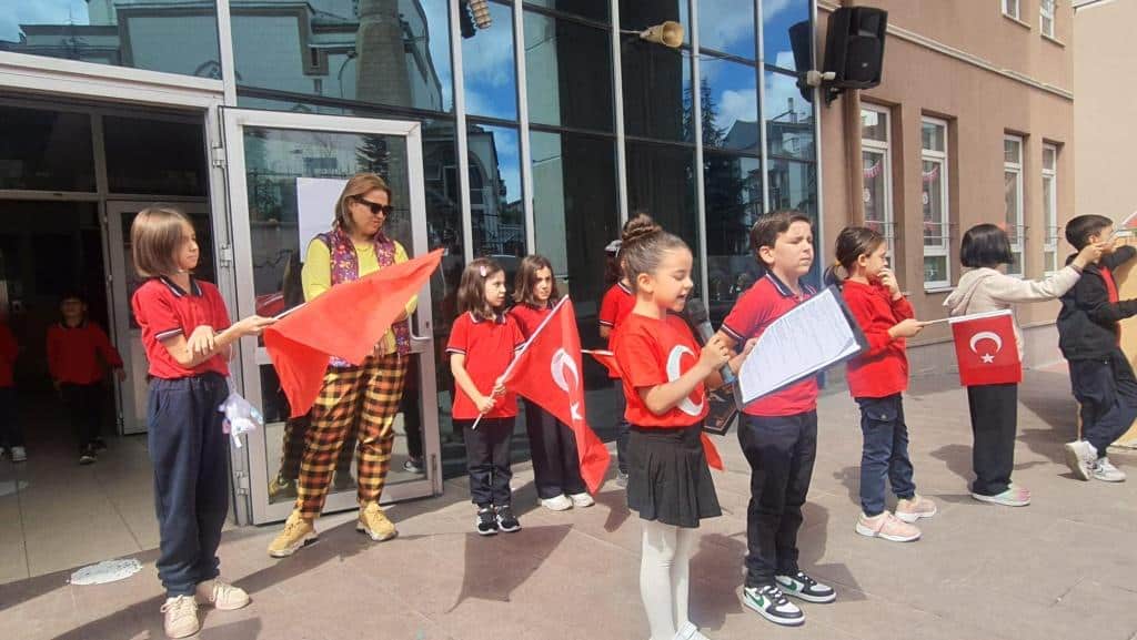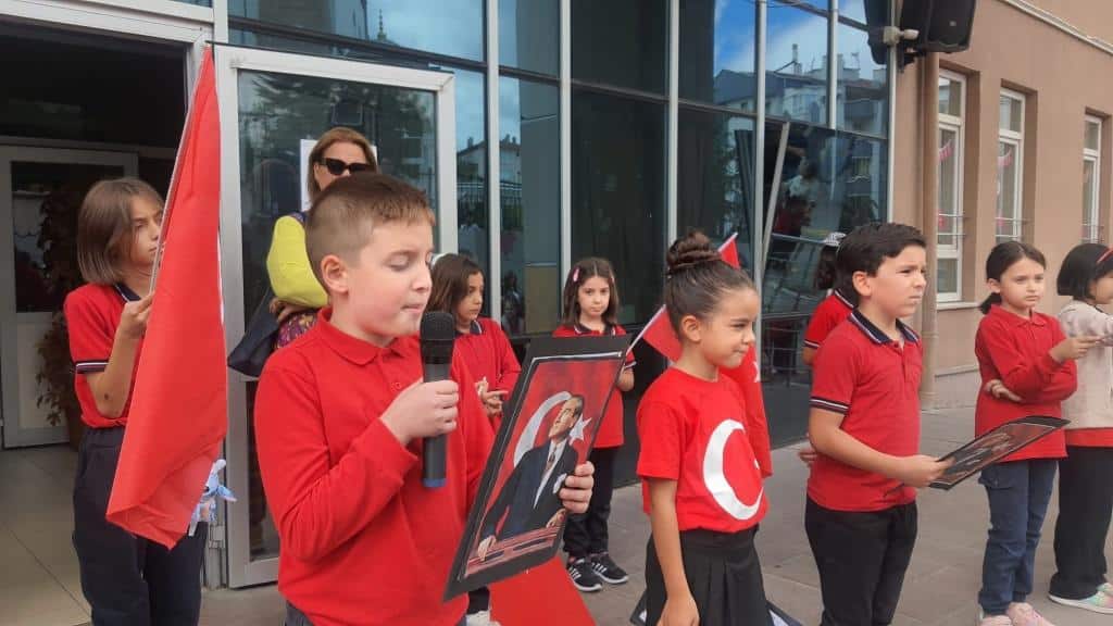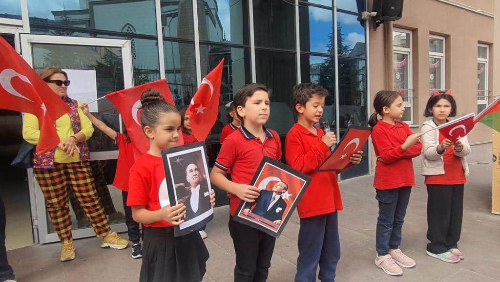 Öğrencilerimizin Türk bayraklarıyla çıktığı sahnede özgürlük ve bağımsızlığımızın coşkusu ve gururu açıkça hissedildi.