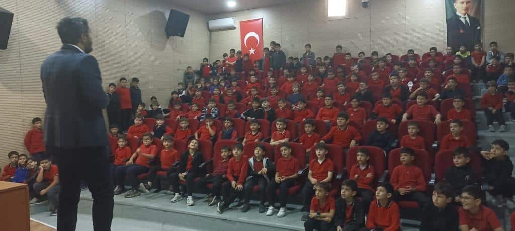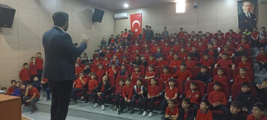Rehber öğretmenimiz Deniz POLAT tarafından okulumuz 100. Yıl Salonu^nda 3 ve 4 sınıf öğrencilerimize yönelik; her türlü bağımlılıkla mücadele ve şiddetin önlenmesi kapsamında bilgilendirme çalışması yapılmıştır.